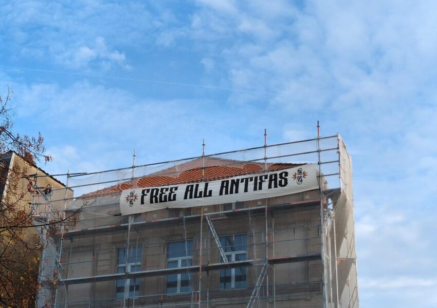 Die im Rahmen des Budapester Prozesses angeklagte Antifaschistin Emmi wurde am 3. November 2025 aus dem Gefängnis Luckau-Duben in das Gefängnis Duisburg-Dinslaken verlegt. Diese ohne Vorankündigung erfolgte Verlegung zeugt von der Behandlung, die den in diesem Fall angeklagten Personen durch den deutschen und den ungarischen Staat zuteilwird. Um sie zu unterstützen, gibt es immer mehr Aktionen wie die des Secours Rouge in Brüssel (siehe hier) und Toulouse (siehe hier).