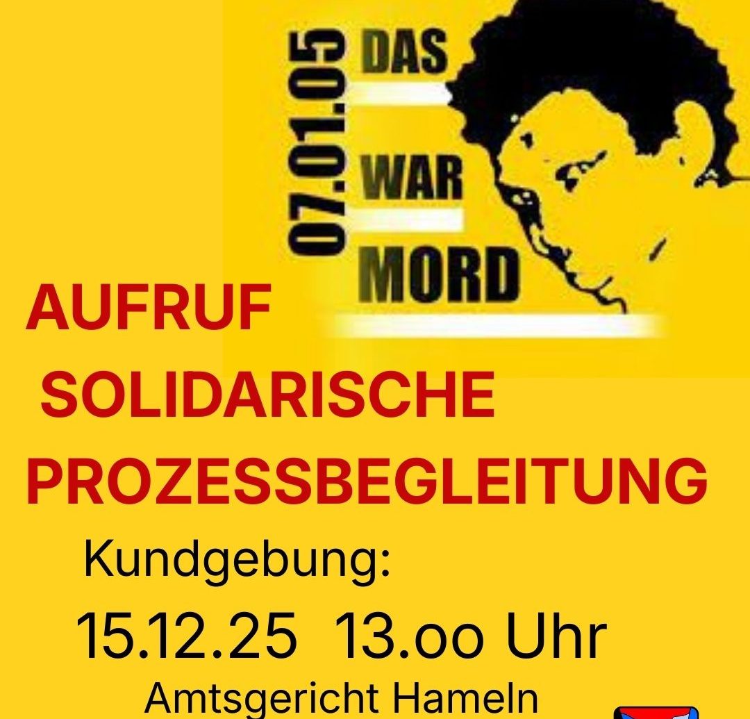 Gegen rassistische Polizeigewalt! Kommt am 15.12.2025 mit zu der Kundgebung vor das Amtsgericht Hameln (Zehnthof 1) Beginn der Kundgebung ist 13.oo Uhr Am 15. Dezember […]