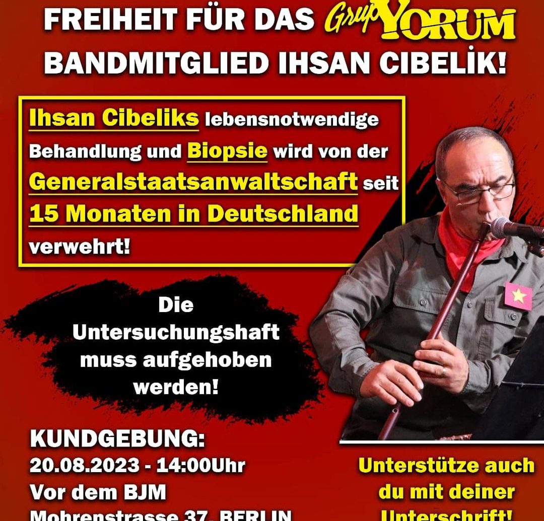 15.08.2322.08.23/23.08.2329.08.23/30.08.23/31.08.22HAFTENTLASSUNG FÜR DEN KRANKEN INHAFTIERTEN IHSAN CIBELIK! #freegrupyorumFREIHEIT FÜR IHSAN, ÖZGÜL UND SERKAN! #Hungerstreik129 #Wegmit129ab