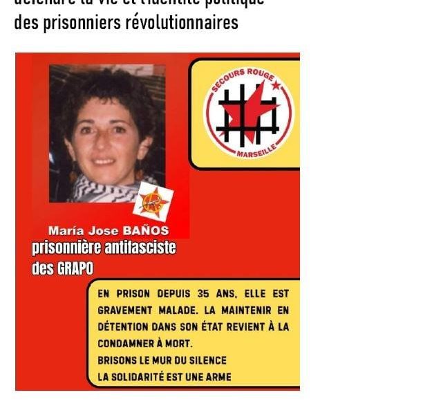 „Der spanische Staat ist dabei, ein weiteres Staatsverbrechen zu begehen! Wenn wir dies nicht verhindern, könnte María José Baños Andújar ihr Leben verlieren, als Opfer der Politik der Ausrottung politischer Gefangener durch den spanischen Staat.