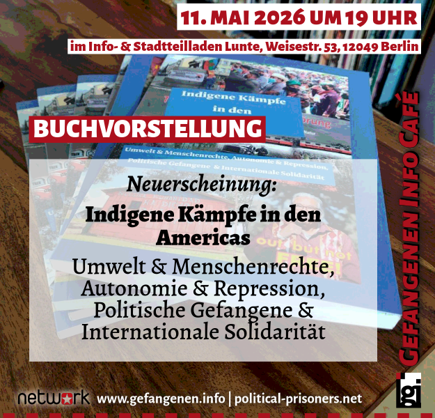 Wir laden Euch herzlich zum nächsten Gefangenen Info Café ein! Montag 11. Mai 2026 von 17-21 UhrBuchvorstellung ab 19 UhrInfo- & Stadtteilladen Lunte(Weisestr. 53, 12049 […]