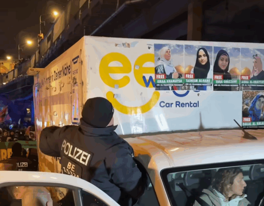 Berlin: Polizei entfernt Plakate zur Unterstützung palästinensischer Gefangener während eines feministischen Marsches