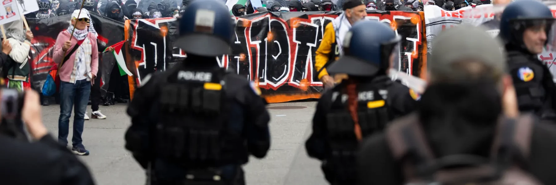 Gegen die Protestierenden wird durch Einsatz von Tränengas und scharfe Munition vorgegangen.