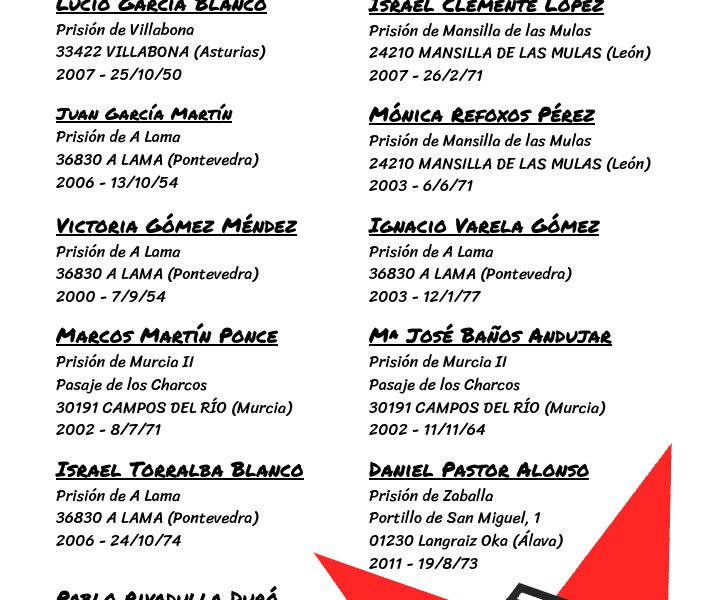 Spanien: Neue Adressen des Kollektivs kommunistischer und antifaschistischer politischer Gefangener