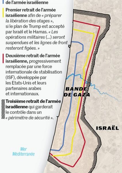 In der Nacht vom Mittwoch auf Donnerstag, den 9. Oktober 2025, wurde nach Verhandlungen zwischen einer Delegation verschiedener palästinensischer Organisationen, darunter die PFLP, und Israel in Ägypten ein Waffenstillstandsabkommen in Gaza angekündigt. In einer Erklärung hat die Hamas das Dokument gebilligt, während Netanjahu am Donnerstag seine Regierung einberufen wird, um das Abkommen zu bestätigen. Dieses sieht vor, dass innerhalb von 72 Stunden nach der Unterzeichnung 20 lebende israelische Gefangene gegen fast 2.000 palästinensische politische Gefangene freigelassen werden, darunter 250 zu lebenslanger Haft Verurteilte und 1.700 weitere, die seit Beginn der Offensive in Gaza inhaftiert sind. Das Abkommen sieht auch eine Intensivierung der humanitären Hilfe mit mindestens 400 Lastwagen pro Tag, die sofortige Rückkehr der Vertriebenen aus dem Süden des Gazastreifens nach Gaza-Stadt und in den Norden sowie einen schrittweisen Rückzug der israelischen Armee vor (siehe Karte). Das Abkommen sieht mehrere weitere Phasen vor, von denen die nächsten Punkte enthalten, über die erhebliche Meinungsverschiedenheiten bestehen, insbesondere die Entwaffnung palästinensischer Organisationen und das von Trump geleitete Projekt eines „Friedensrats” zur Verwaltung der palästinensischen Enklave. Seit der Ankündigung wurde über intensive Luftangriffe auf Gaza-Stadt berichtet.