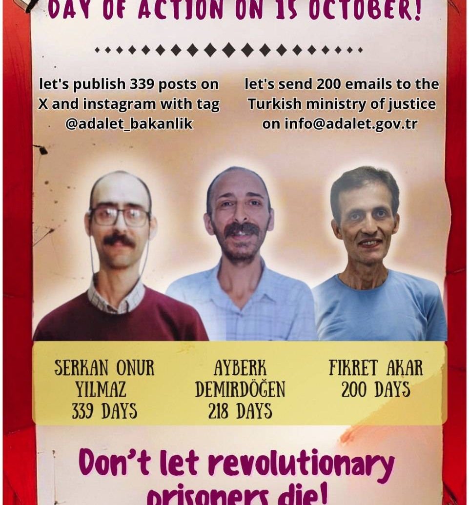Template for an e-mail: To the attention of the Minister of Justice Serkan Onur Yılmaz has been on hunger strike for over 330 days. Ayberk […]