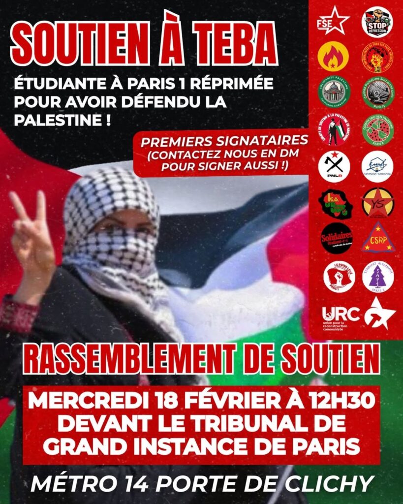 Am Mittwoch, den 18. Februar, um 12:30 Uhr findet vor dem Gerichtshof von Paris (Metro Porte de Clichy) eine Kundgebung zur Unterstützung von Teba statt, […]