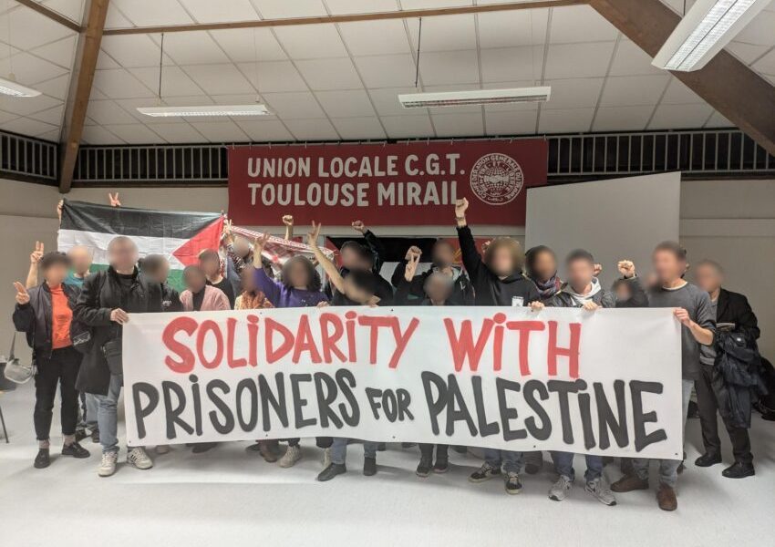 Am Freitag, dem 14. November, bekräftigten die Teilnehmer eines Treffens von Luftfahrtarbeitern, die sich gegen den Völkermord in Palästina engagieren, ihre Solidarität mit den 33 pro-palästinensischen Gefangenen im Vereinigten Königreich, die aufgrund von Aktionen gegen den größten israelischen Waffenhersteller Elbit Systems inhaftiert sind (siehe unseren Artikel). Insbesondere bekundeten sie ihre Unterstützung für die sechs Gefangenen, die derzeit aus Protest gegen die Komplizenschaft Großbritanniens mit Elbit Systems und für die Freiheit aller im Hungerstreik sind. Der Abend fand in der UL CGT du Mirail statt und wurde gemeinsam von Stop Arming Israël France, dem Comité de soutien à la Palestine 31 und Gewerkschaftern der CGT aus diesem Sektor organisiert.