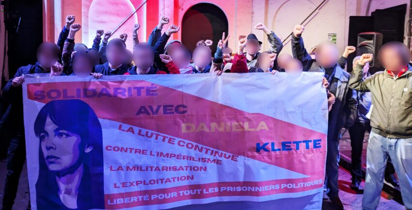 Am Donnerstag, dem 6. November, nahmen in der Chapelle de Toulouse rund fünfzig Menschen an einem Solidaritätsabend für Daniela Klette teil, der gemeinsam von der LJR, der Défense Collective und dem Secours Rouge organisiert wurde. Die Veranstaltung bot insbesondere Gelegenheit, auf die Geschichte des Klassenkampfs in Deutschland, die Rote Armee Fraktion sowie den Werdegang von Daniela Klette einzugehen, einer deutschen Revolutionärin, die derzeit nach ihrer Verhaftung im Jahr 2024 vor Gericht steht, wodurch ein 30-jähriges Leben im Untergrund beendet wurde (siehe unseren Artikel). Der Abend endete mit dem Hinweis auf die Notwendigkeit, die Mobilisierung fortzusetzen, und es wurden etwa fünfzehn Solidaritätskarten verfasst, die ihr zugesandt werden sollen.