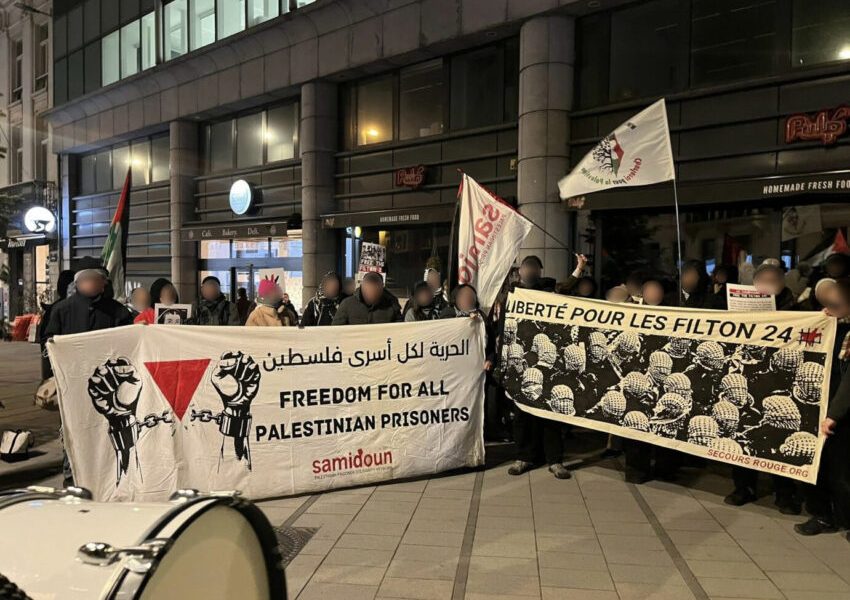 Gleichzeitig geht die Mobilisierung zur Unterstützung der Hungerstreikenden weiter, die für die Freilassung gegen Kaution aller Personen kämpfen, die wegen ihres Engagements gegen den Völkermord in Palästina im Vereinigten Königreich unterdrückt werden: Heba Muraisi, Teuta Hoxha, Kamran Ahmed und Lewie Chiaramello. In den letzten Tagen wurden mehrere Kundgebungen im Vereinigten Königreich organisiert, insbesondere vor den Gefängnissen der Inhaftierten, aber auch in Paris, Madrid, Ramallah und Brüssel (siehe Foto).
